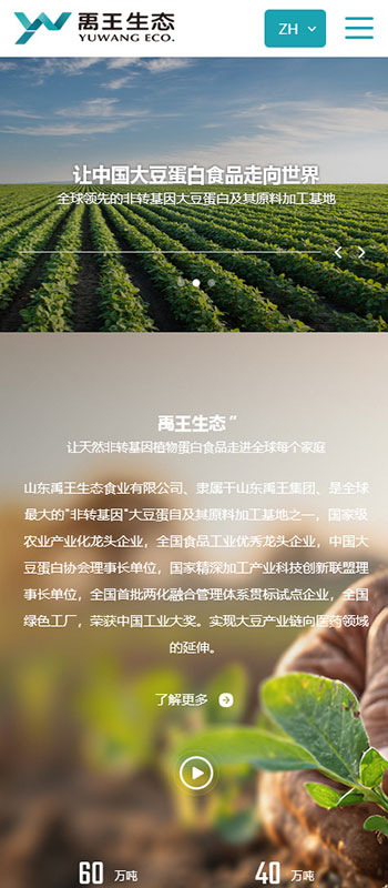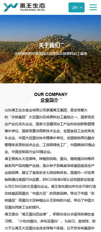 山东禹王生态食业有限公司隶属禹王集团,是全球最大的“非转基因”大豆蛋白及其原料加工基地之一、国家级农业产业化龙头企业、国家大豆精深加工产业科技创新联盟理事长单位、国家级重点高新技术企业、全国食品工业优秀龙头企业,中国大豆蛋白协会理事长单位,全国首批两化融合管理体系贯标试点企业,工信部绿色工厂、中国粮油50强企业、中国豆制品行业50强企业。